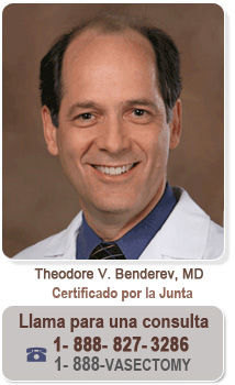 El Dr. Ted Benderev es urólogo bien conocido desde 1990, ha realizado más de 2000 procedimientos de vasectomía y reversión de vasectomía. Su consultorio está bien situado en el sur de California y atiende a las comunidades de Aliso Viejo, Anaheim, Costa Mesa, Corona, Fountain Valley, Fullerton, Huntington Beach, Irvine, Ladera Ranch, Laguna Hills, Laguna Niguel, Mission Viejo, Newport Beach, Orange, Rancho Santa Margarita, San Juan Capistrano, Santa Ana, San Clemente, Tustin, Westminster, y los condados adyacentes de Riverside, San Diego y Los Angeles.